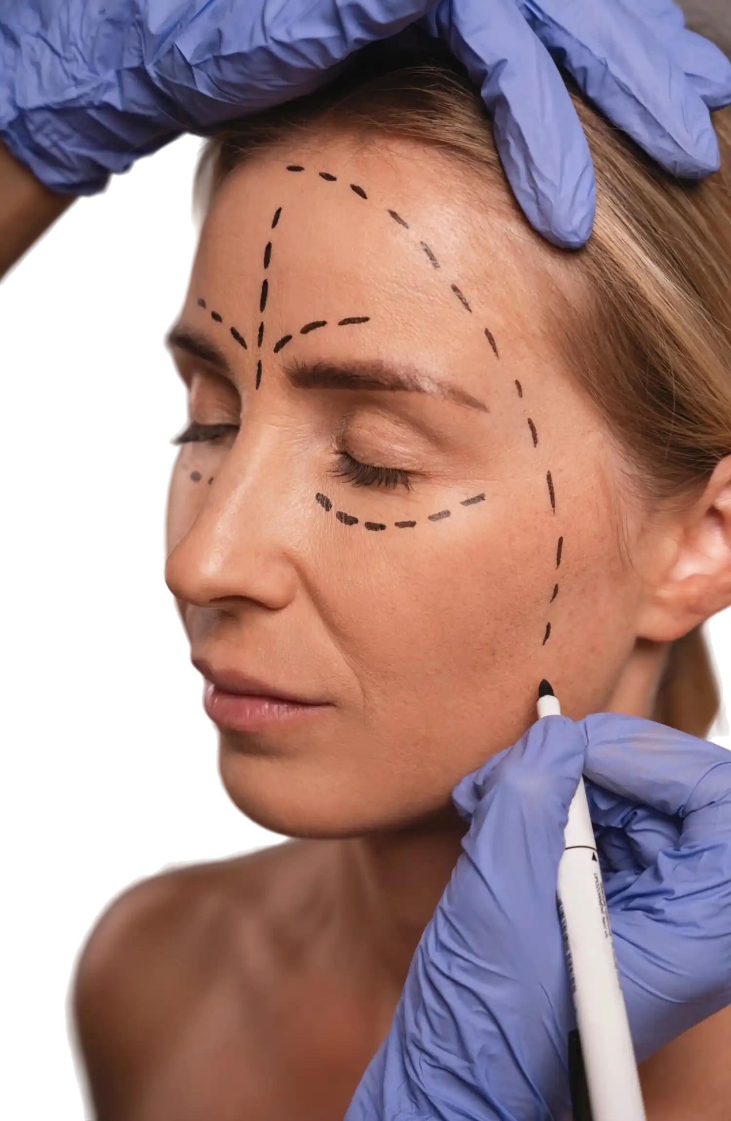 Gesichtsbehandlungen unterscheiden sich je nach Zielsetzung und Methode – etwa in Lidstraffung (Oberlid/Unterlid), Facelift, Stirn- und Brauenlift, Nasenkorrektur, Kinn- oder Wangenkorrektur, Ohrkorrektur sowie Lippenlifting (Bullhorn Lift).